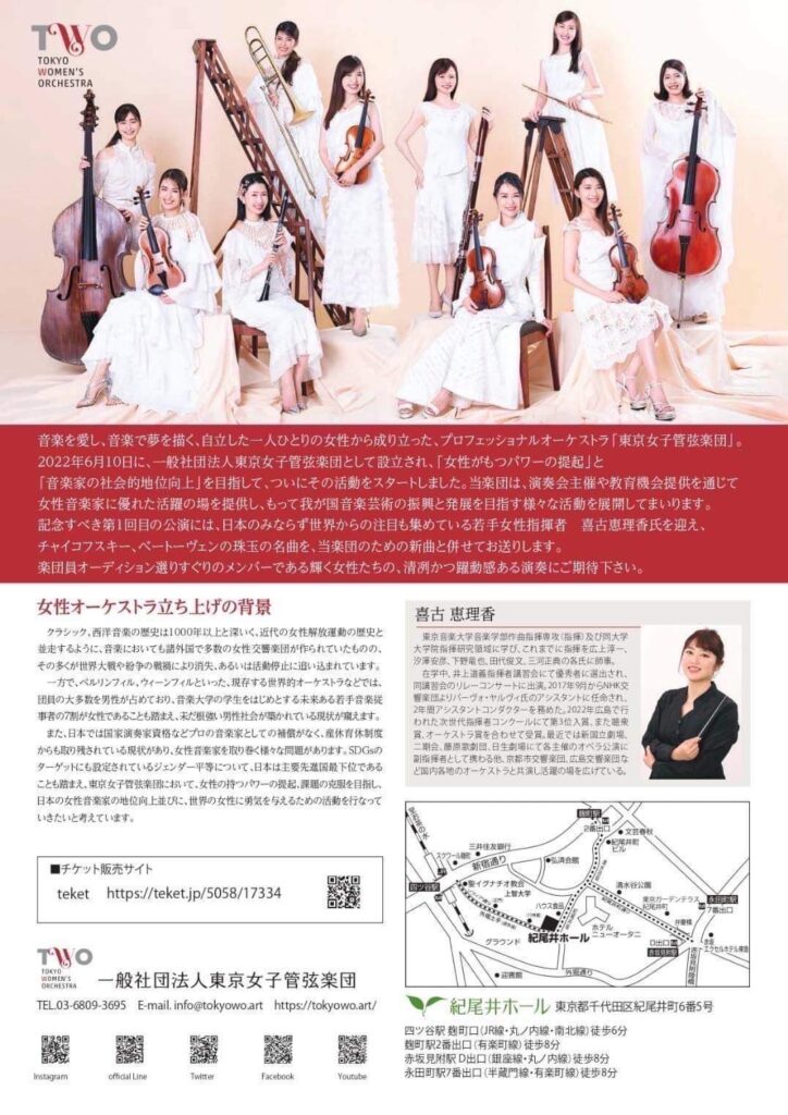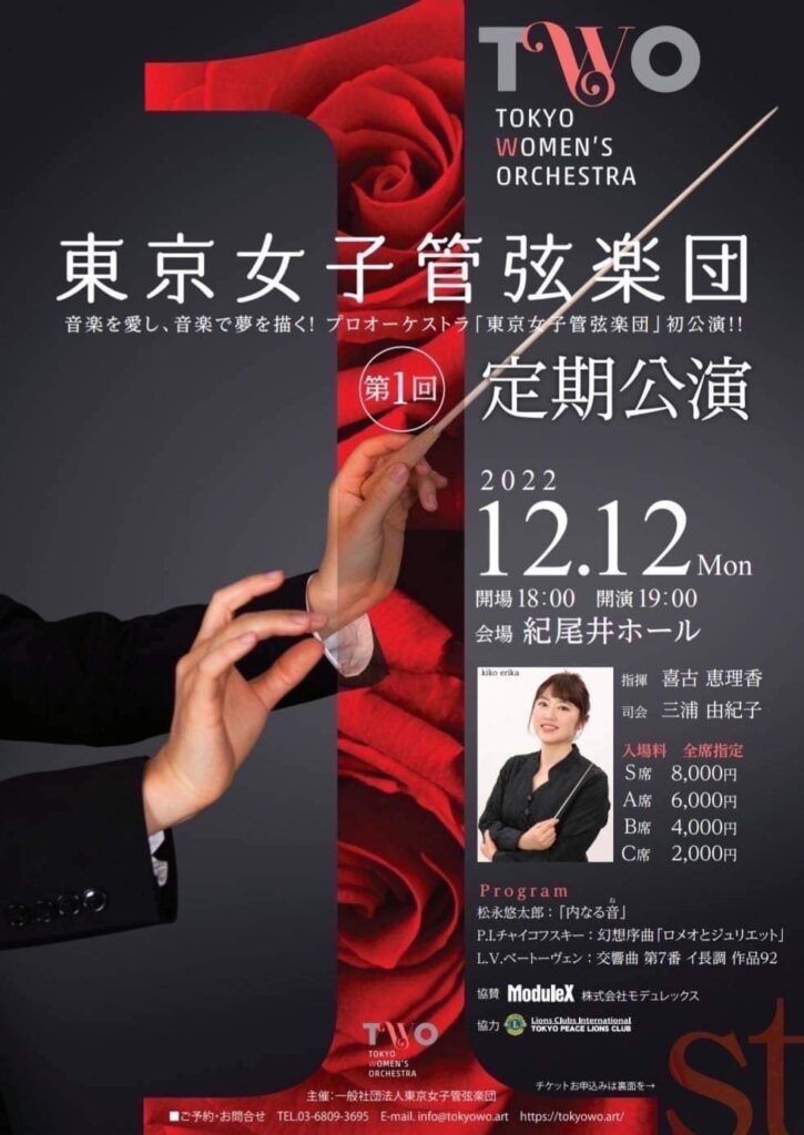 日本初の女性のみで構成されるオーケストラ楽団「東京女子管弦楽団」による第一回定期公演が、2022年12月12日(月)、東京・紀尾井ホールにて開催されます。